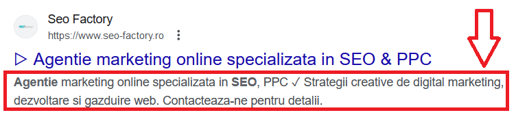 Motoarele de cautare afiseaza adesea meta descrieri care contin cuvinte cheie relevante pentru interesul de cautare al unui utilizator.